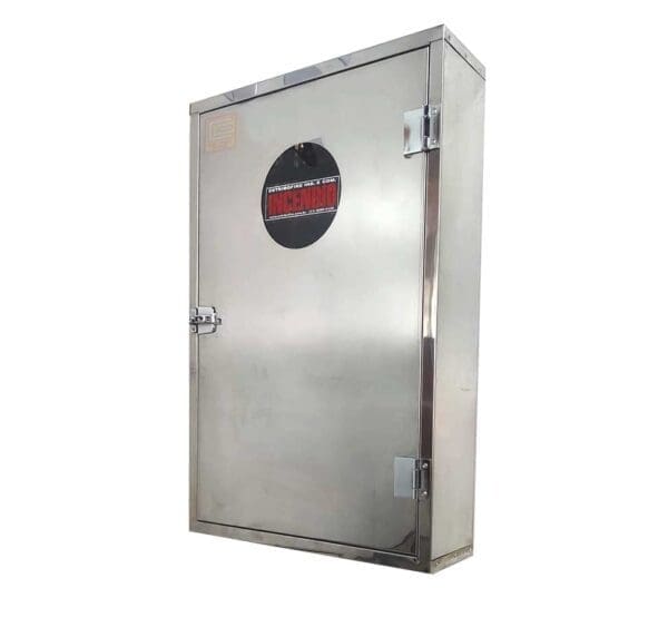 Ademais, o aço inox 304 ou 430 garante resistência à umidade, a altas temperaturas e a agentes corrosivos. Consequentemente, o abrigo mantém a mangueira protegida, organizada e sempre acessível. Assim, o usuário ganha praticidade no dia a dia.